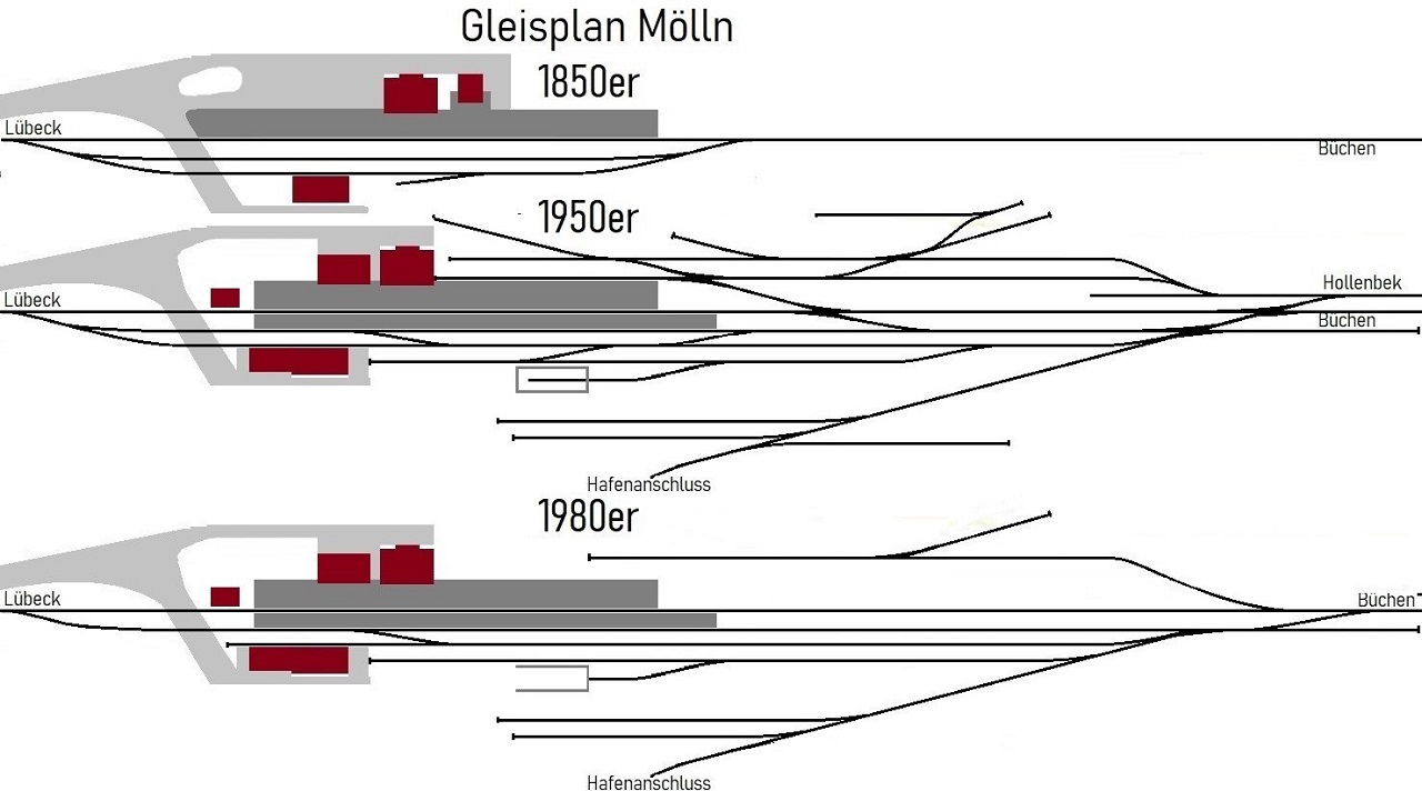 GLP Gleisplan Bahhof Mölln 1853 1950 1980