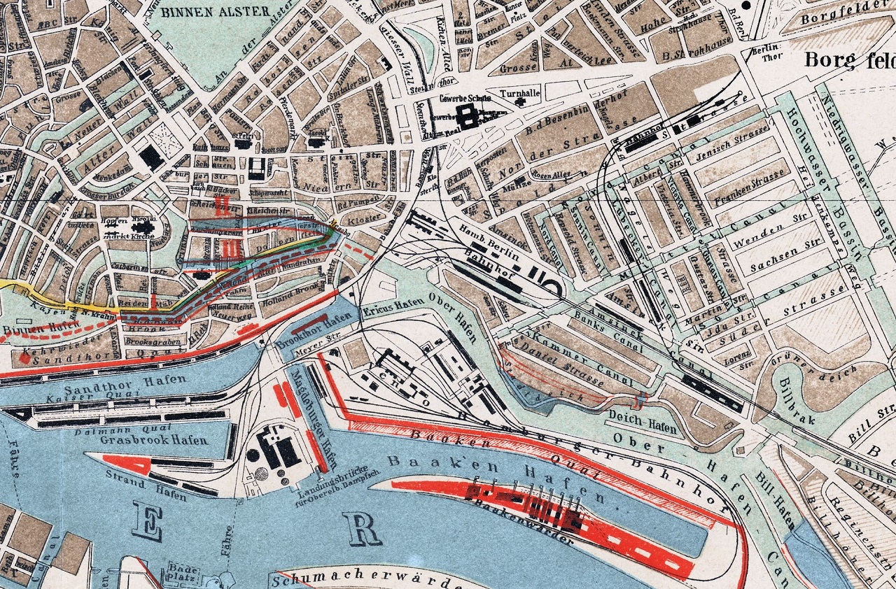 1881 Karte Hamburg Berliner Bahnhof Gleisanlagen GLP Straßenkarte (1)