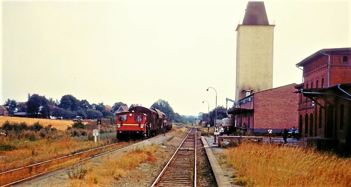 Mollhagen Bahnhof Haltestelle 1969 Raiffeisen Eisenbahn Gleise Köf3 Rangieren DB (1)