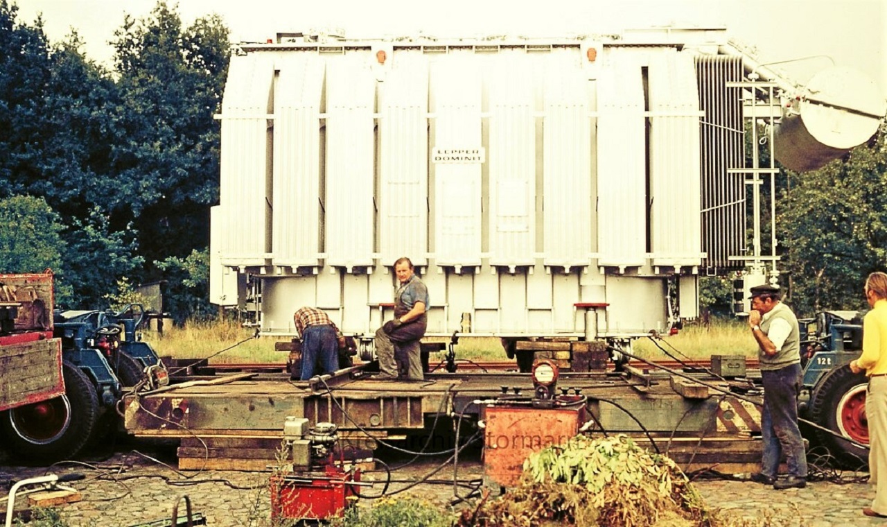 Trittau Entladestelle Transformator abladen Transfer Ha´nomag Henschel Schwertransport F. Rath (6)