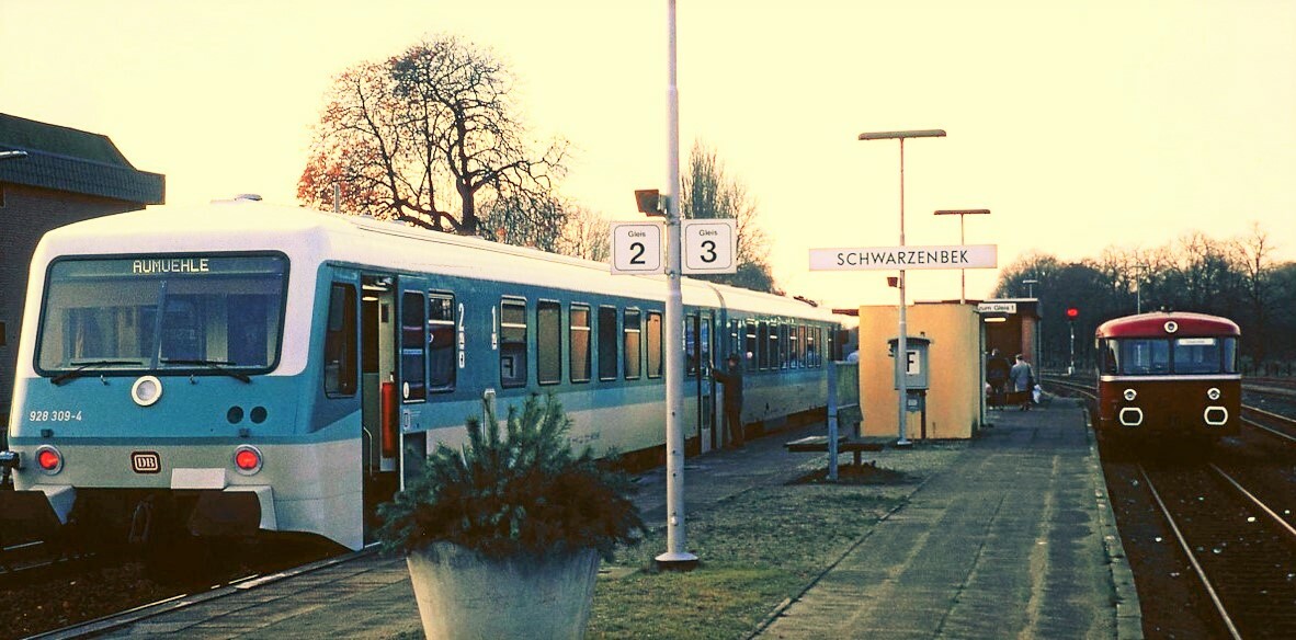 Schwarzenbek Bahnhof 1987 BR 628 928 VT98 Schienenbus Regionalverkehr a (1)