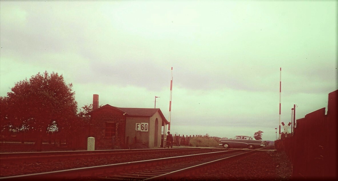 rumpel ruempel bahnhof 1966 Bahnübergang Hauptstrecke Vogelfluglinie Schranken Bahnwärterhäuschen (1