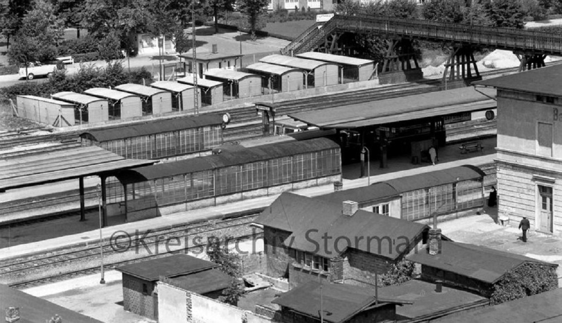Bad Oldesloe Bahnhof 1960 Vogelfluglinie Deutsche Bundesbahn Bahnsteig Bahnhofsgebäude (1)