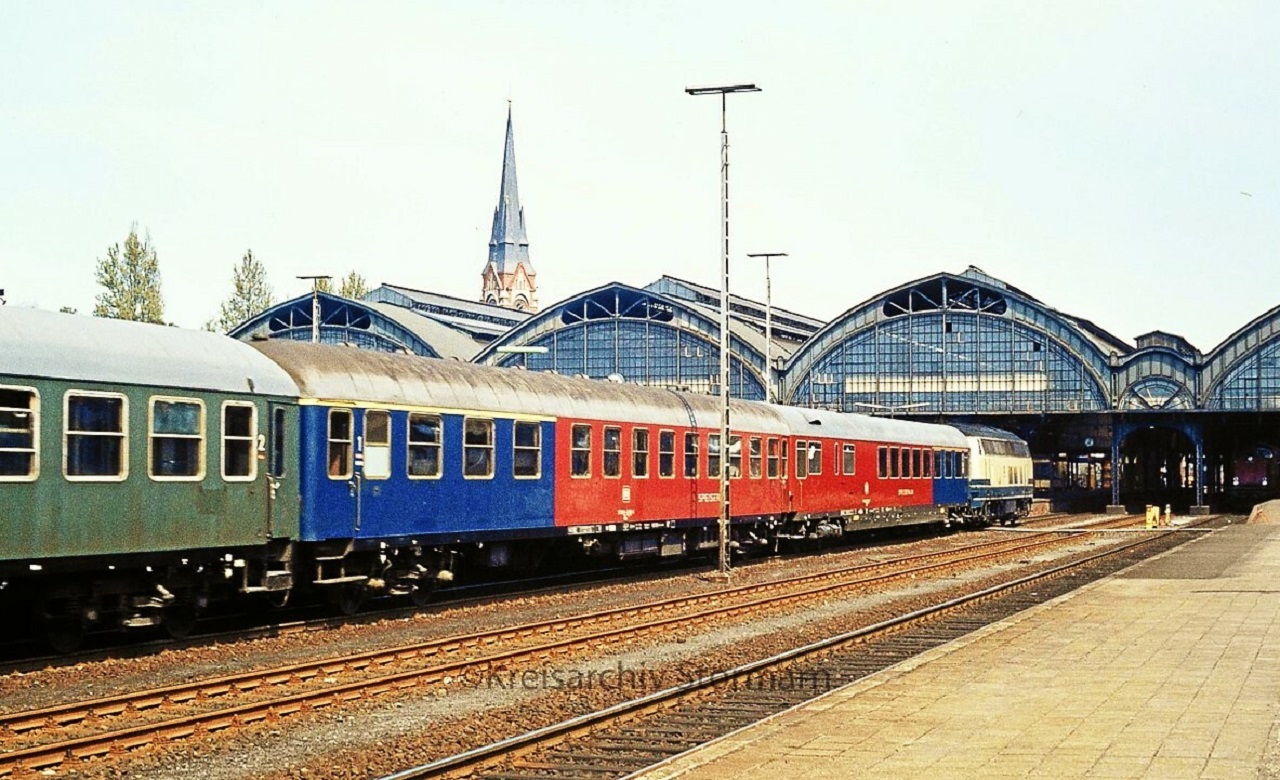 Kakadu Halbspeisewagen doppelt duo BR 218 1980 Lübeck hauptbahnhof
