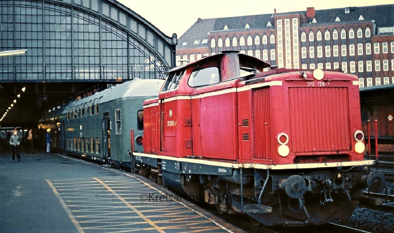 BR212 128 Doppelstockwagen LBE DAB 6 Lübeck Hauptbahnhof 1980