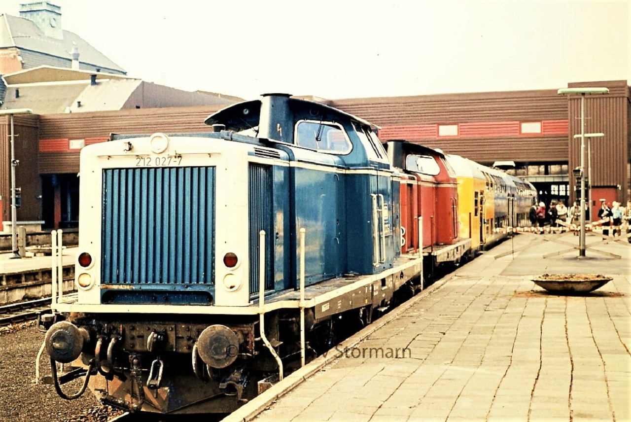 BR212 027 Doppelstockwagen LBE DAB 6 Lübeck Hauptbahnhof 1983