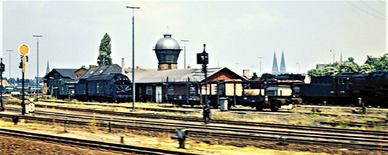 Dampfschneeschleuder Lübeck Dampfzug Dampflok Hauptbahnhof 1969 Wasserturm Lokschuppen