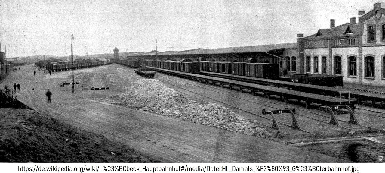 Lübeck1908 neuer Hauptbahnhof Güterbahnhof Verladestraße Zoll Lübeck Büchener Eisenbahn Gesellschaft