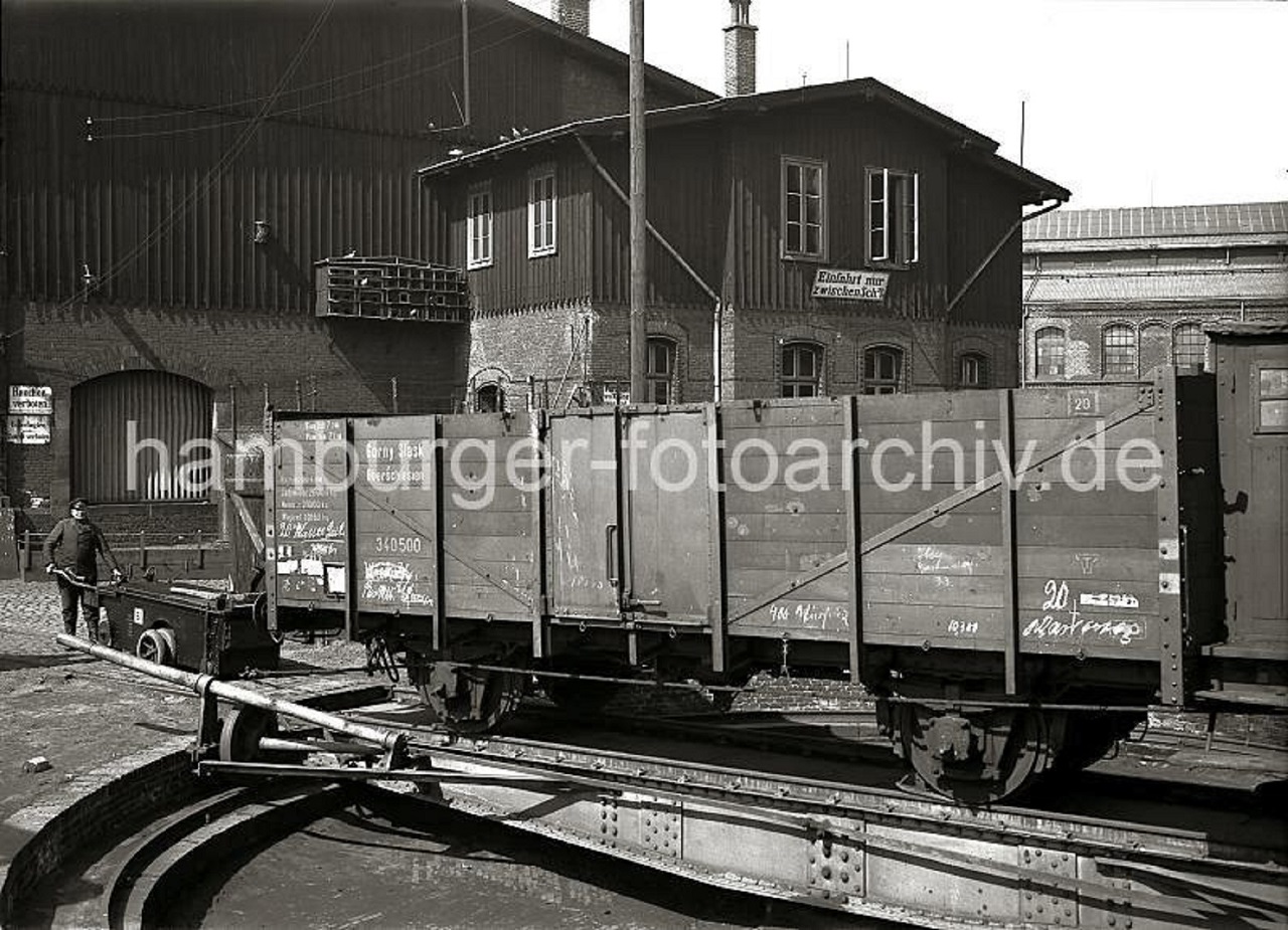 1959 1930 Arbeiter zieht mit Hilfe eines Einachsschleppers einen Güterwaggon einer Drehscheibe am St