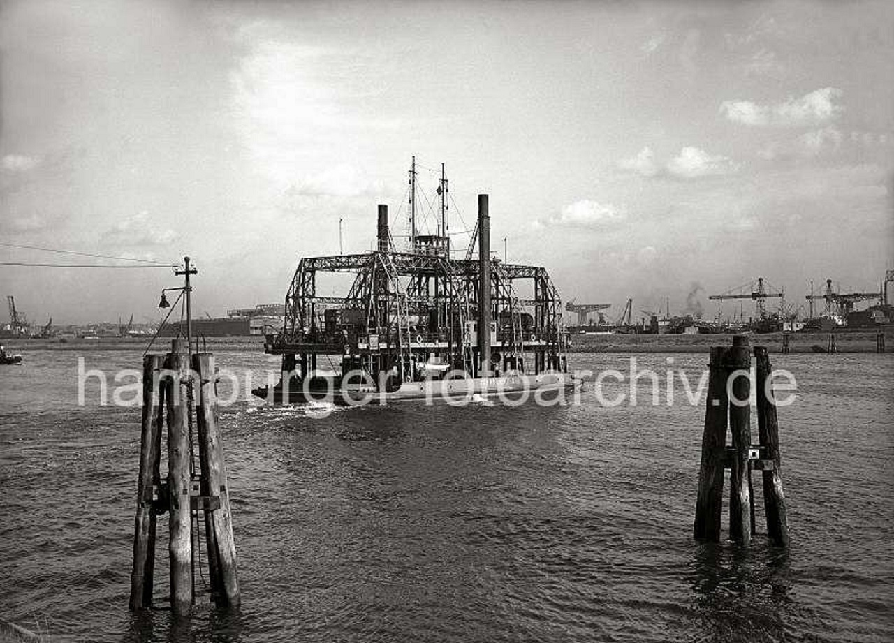 1950 Eisenbahnfähre Fährschiff II Güterwaggons Köhlbrandtrajekt verbindet Waltershof mit Steinwerder