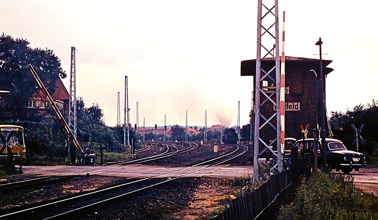 Hittfeld 1967 Elektrifizierung der Strecke Mercedes Poton Bahnübergang Schranke